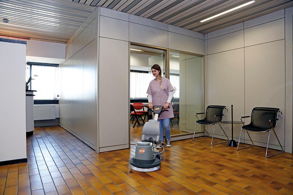 הדגם כולל מערכת הנעה ישירה באמצעות גלגלי שיניים מניון (Nylon Gear Transmission), המתאימה במיוחד לטיפולי תחזוקה שוטפים ברצפות מכל הסוגים.
